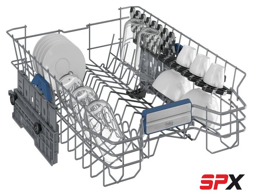Особенности верхней корзины | регулировка положения по высоте, складывающиеся держатели |