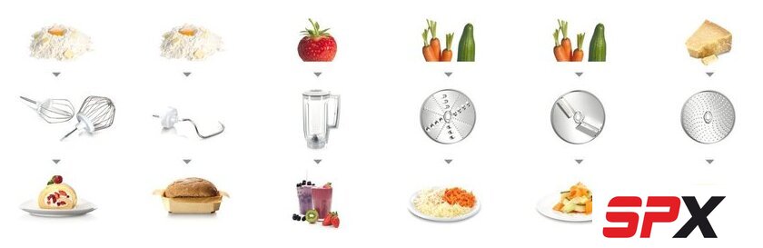 | Функции | блендер, взбивание, смешивание, замешивание дрожжевого теста, терка, шинковка, ломтерезка |