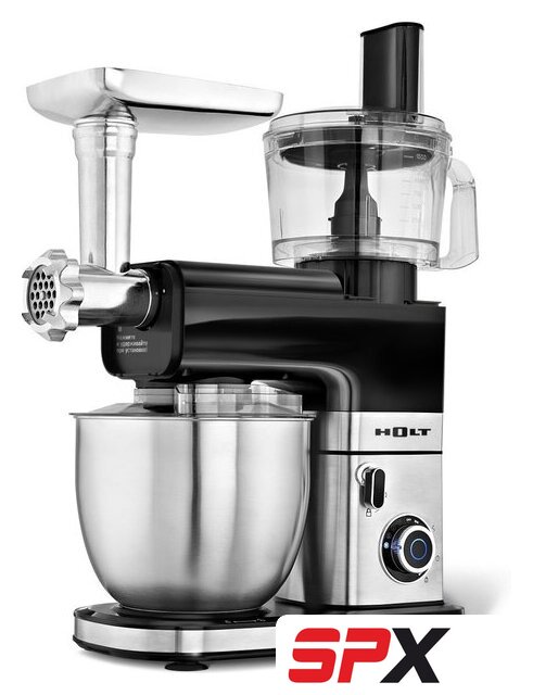 | Функции | мясорубка, взбивание, смешивание, замешивание дрожжевого теста, измельчитель, рубка, терка, шинковка, ломтерезка, драники |