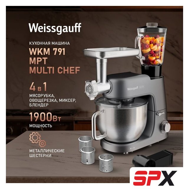 Функции | мясорубка, блендер, взбивание, смешивание, замешивание дрожжевого теста, терка, шинковка, ломтерезка |
