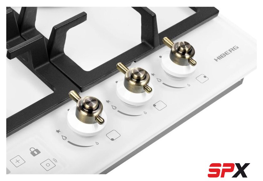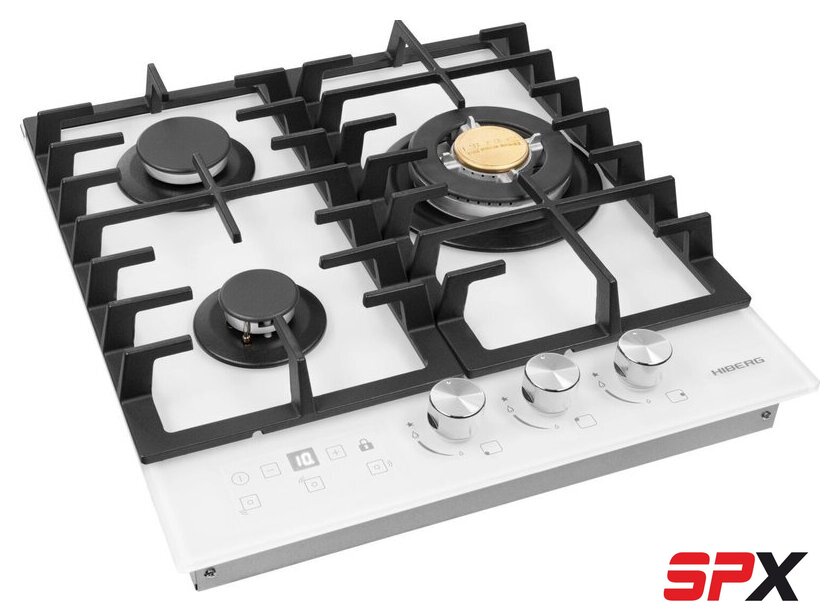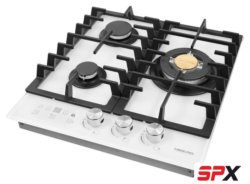 | Подробная информация о конфорках | Одна конфорка WOK с тройным рядом пламени, мощностью 3.4 кВт, две стандартные газовые конфорки. |