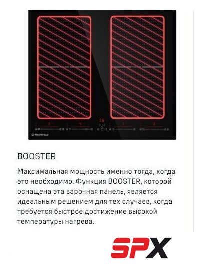 Подробная информация о конфорках | 2х2000Вт (бустер 2800Вт)2х1500Вт (бустер 2000Вт) |