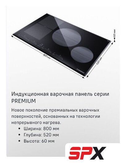 Подробная информация о конфорках | 1х2000 (бустер 2800)1х1500 (бустер 2000)1x2300 (бустер 3000)1x1200 (бустер 1500) |