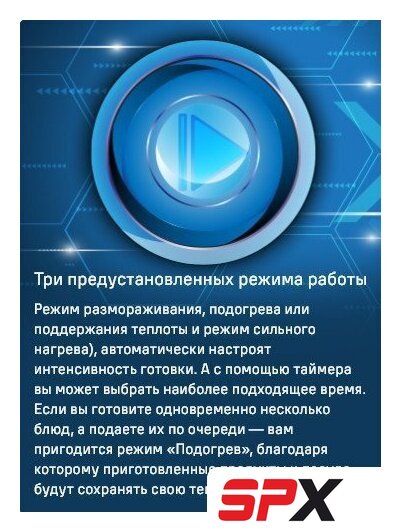Автоматические программы | размораживание, подогрев, сильный нагрев |