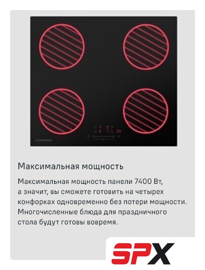 Подробная информация о конфорках | 4 конфорки мощностью: 2000, 2000, 1500, 1500 Вт |