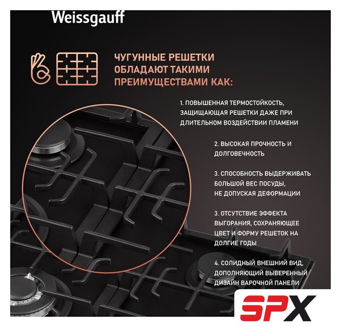 | Чугунные конфорки | нет |