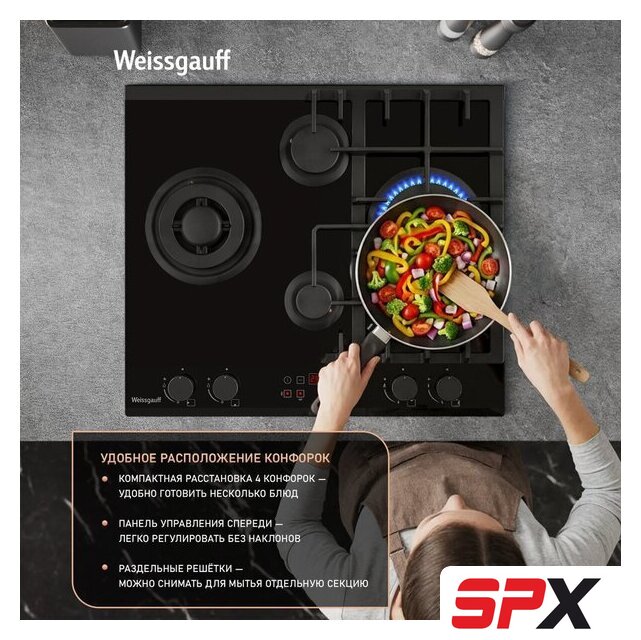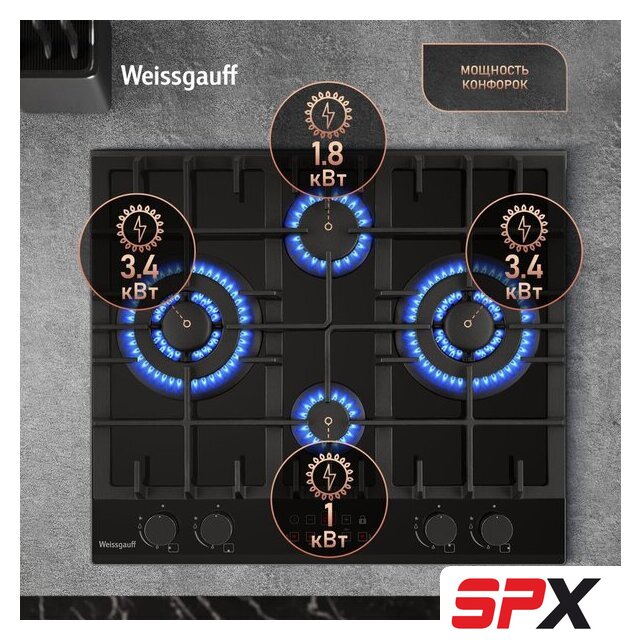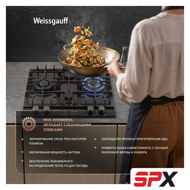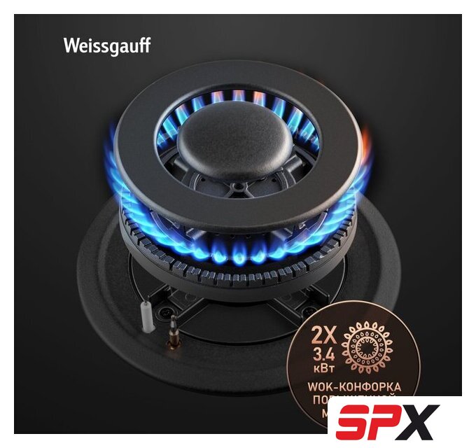 | Подробная информация о конфорках | Две WOK-конфорки мощностью по 3.4 кВт, одна средняя конфорка 1.8 кВт, одна малая конфорка 1.0 кВт |
