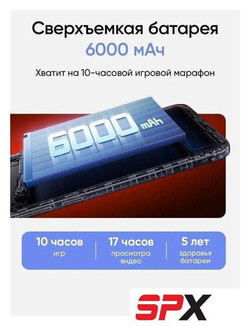 | Емкость аккумулятора | 6 000 мА·ч |