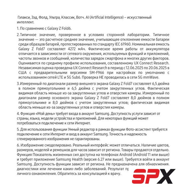 | Отличия от предыдущего поколения | ✅ В Galaxy Z Fold7 реализовано несколько инноваций, которые отличают его не только от Galaxy Z Fold6, но и от любого другого складного смартфона на рынке. Во-первых, широкие дисплеи как внутри, так и снаружи. Диагональ внешнего экрана теперь составляет 6.5 дюйма, а основной экран имеет впечатляющую диагональ 8 дюймов с более широким соотношением сторон, что обеспечивает более плавную работу в многозадачном режиме.✅ И хотя дисплеи стали больше, сам смартфон значительно уменьшился в размерах и стал более портативным, чем все предыдущие Galaxy Z Fold, как в сложенном, так и в раскрытом виде. В раскрытом виде его толщина составляет 4.2 мм, а в сложенном — 8.9 мм, что делает его примерно на 25% тоньше Galaxy Z Fold6.✅ В сложенном состоянии экран Galaxy Z Fold7 имеет соотношение сторон 21:9, аналогичное соотношению сторон у премиальных смартфонов моноблокового типа. Такое улучшенное соотношение сторон обеспечивает удобство и естественность набора текста, а также повышает производительность. |