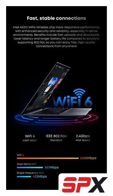 | Wi-Fi | 802.11ax (Wi-Fi 6) |