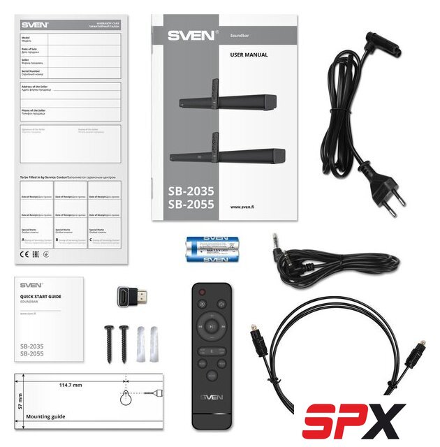 | Комплект поставки | - пульт ДУ- батарейки для пульта ДУ (2xAAA)- оптический аудиокабель- аудиокабель 3.5 мм- адаптер HDMI угловой - адаптер питания- набор для настенного крепежа- документация |