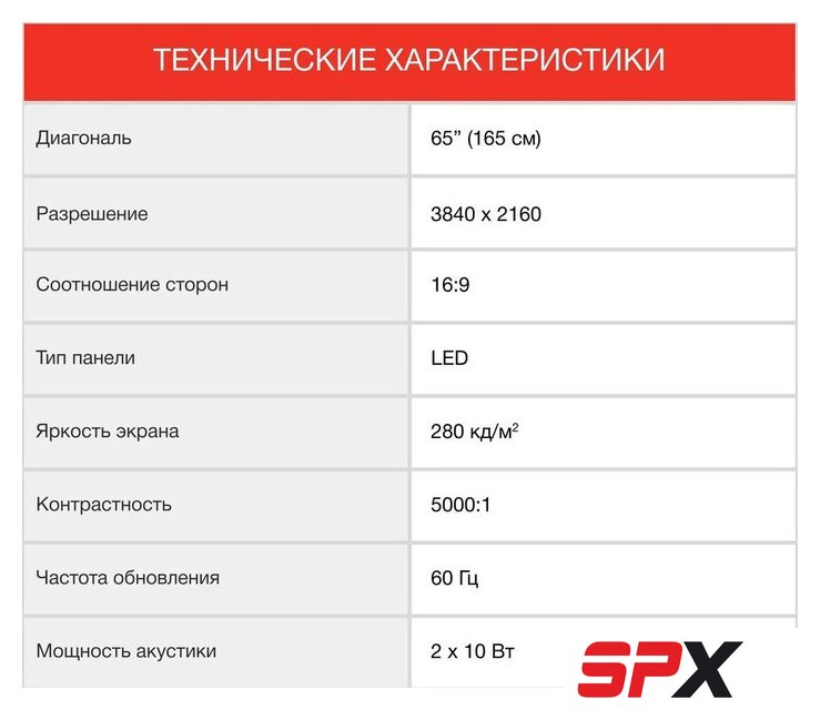 | Диагональ экрана | 65" |